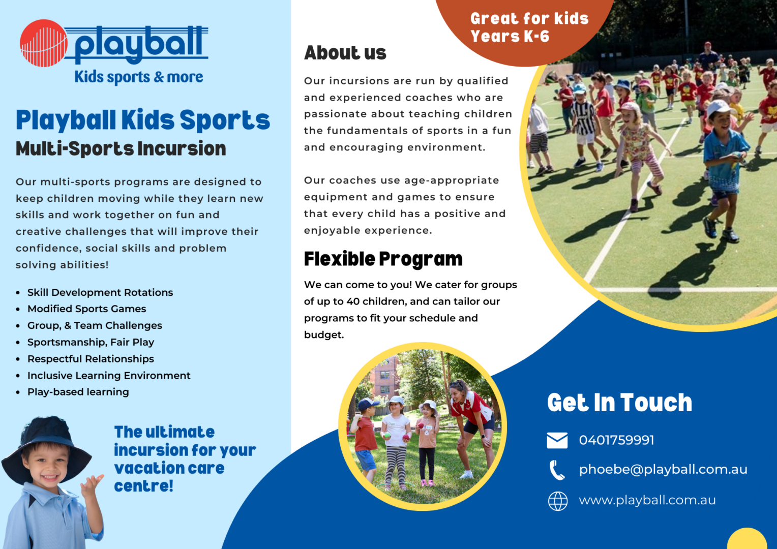 Playball provides multi-sports programs to support and contribute to the highest level possible of quality education available to children.